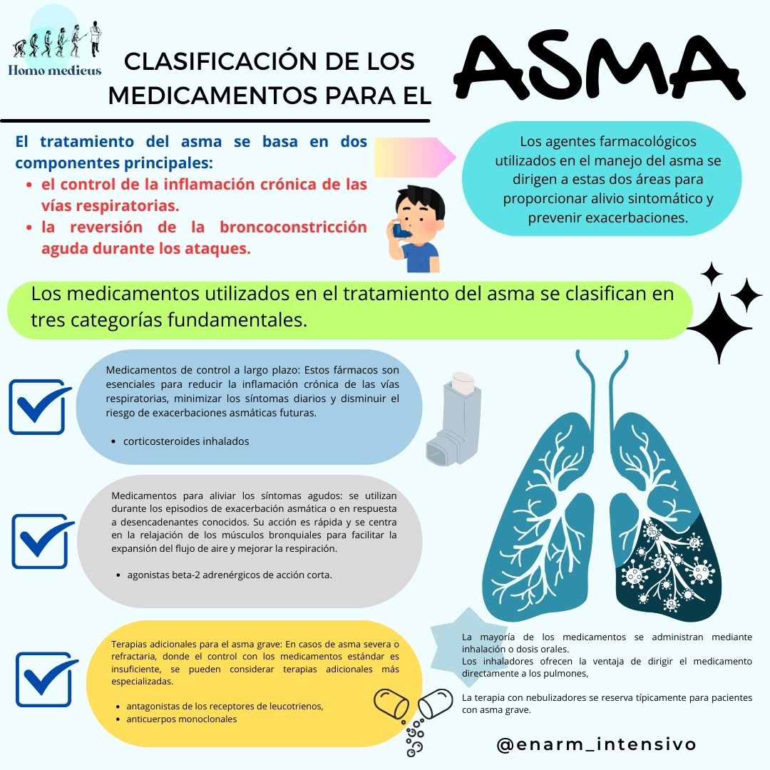 Los agentes farmacológicos utilizados en el manejo del asma se dirigen a estas dos áreas para proporcionar alivio sintomático y prevenir exacerbaciones.