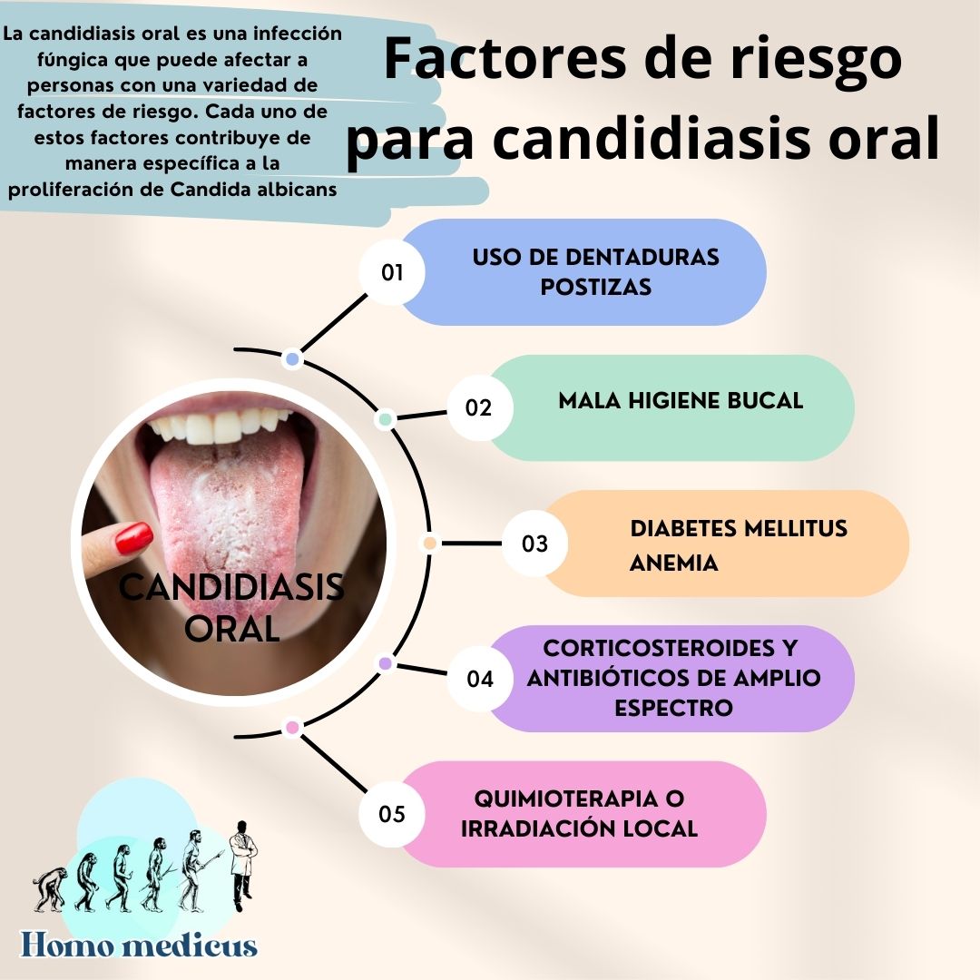 Es importante destacar que la candidiasis oral puede ser una manifestación inicial de la infección por el virus de la inmunodeficiencia humana (VIH). El VIH compromete el sistema inmunológico del individuo, predisponiéndolo a diversas infecciones oportunistas, incluida la candidiasis. Por lo tanto, en pacientes con candidiasis oral sin una causa predisponente conocida para el crecimiento excesivo de Candida, se debe considerar la prueba del VIH como parte del diagnóstico y manejo adecuado del paciente.