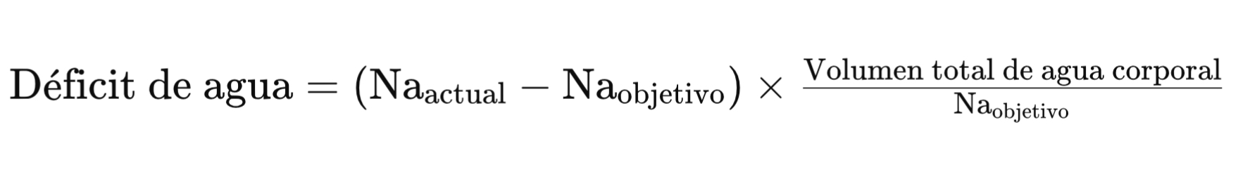 Na objetivo  es la concentración deseada de sodio en plasma (generalmente 140 mEq/L), y el volumen total de agua corporal puede ser estimado con base en el peso del paciente y su composición corporal.